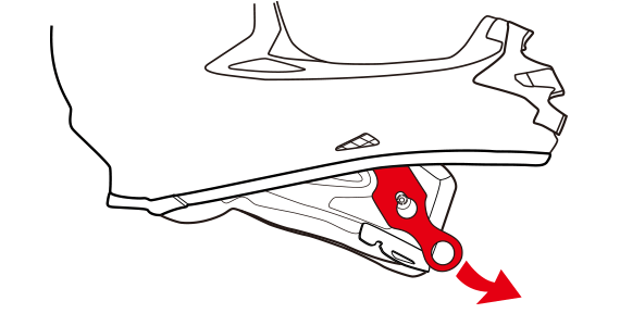 万が一、走行時にアクシデントが発生してしまった場合、第三者がライダーからヘルメットを取り外さなければならない事態もないとは言えません。E.Q.R.S.(Emergency Quick Release System)は、この万が一の際のヘルメット取り外し作業をサポートする新システムです。アクシデント時に、チンバー内側にある専用リングを引くことでパッドを容易に取り外すことができ、ライダーの頚部への負担を最小限に抑えつつ、容易にヘルメットを取り外すことが可能です。